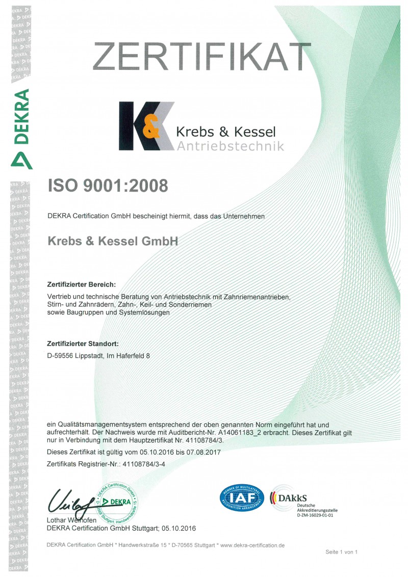 Wir freuen uns, dass Krebs & Kessel nun erfoglreich ISO 9001:2008 zertifiziert ist. Haben Sie Fragen an uns? So zögern Sie bitte nicht uns zu kontaktieren - wir helfen jederzeit gern.