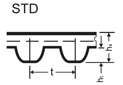 - Großes Zahnvolumen und 50 % mehr Zähne im Eingriff als bei vergleichbaren Normzahnriemen.