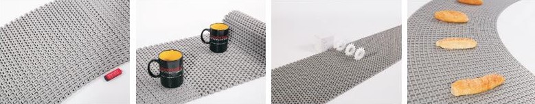 Dieses zuverlässige Modulband wird für Standardkurvenradien in der Backindustrie aber auch bei allen anderen Förderaufgaben eingesetzt und kann durch seine gute Durchlässigkeit gut gereinigt und vorhandene Oberflächenhitze besser abgeführt werden!